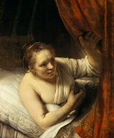 Koop Een vrouw in bed, Rembrandt van Rijn als reproductie geprint op canvas, aluminium dibond, (ingelijste) fotoprint, behang en ArtFrame. Voor jou op maat geprint in Fine-Art kwaliteit.