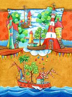 Motive: Een vuurtoren en de ark van Noach op volle zee