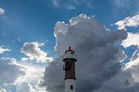 Een grote wolk met de vuurtoren Timmendorf-Poel aan de Oostzee in Mecklenburg-Vorpommern, Duitsland