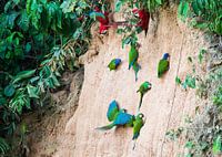 Vogels kijken bij een clay lick kan erg interessant zijn. Een clay lick bestaat in veel gevallen uit een modderwand waarop vogels de nodige mineralen komen op likken. Vroeg in de ochtend ging ik in een hut zitten bij een bekende clay lick en er kwamen veel vogels langs. Voor meer vogels van de clay lick zie: http://naturebylennart.com/nl/birds-blog/enjoying-birds-at-a-clay-lick/.