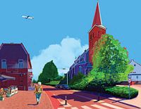 Op de tekening zie je de Sint-Catharinakerk in Ulestraten, een dorp waar ik tijdens mijn puberteitsjaren heb gewoond. Als ‘katholiek meisje’ moet ik me wellicht schamen, maar ik ken vooral de buitenkant van de kerk goed. De binnenkant van het café ‘De Notenbalk’ aan de overkant, ken ik veel beter. In de grote zaal achter dit café werden vaak leuke feestjes georganiseerd en ooit volgde ik er zelfs danslessen. En natuurlijk was de zaal van het café tijdens de carnavalsdagen ‘the place to be’. Maar eerlijk is eerlijk, de parochie kent een langere –en waarschijnlijk boeiender- geschiedenis dan een café en dat spreekt mij altijd wel aan.