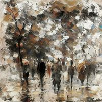 Over het geheel genomen roept het schilderij een gevoel van rust en sereniteit op en vangt het de essentie van een ontspannen herfstdag in het park. Door de semi-abstracte benadering kunnen kijkers zich onderdompelen in de scène, details invullen met hun verbeelding en de zachte, rustgevende sfeer van de natuurlijke omgeving ervaren.