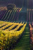Mooie herfstkleuren in een wijngaard in de streek Moravie in Tsjechië. Genomen in een verticaal perspectief.