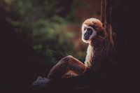 Een withandgibbon is zijn eigen aan het opwarmen in het ochtendzonnetje.
