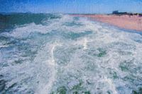 Dit olieverfschilderij, gemaakt met digitale technieken op basis van een zelf genomen foto, vangt niet alleen het beeld maar ook de energie van het moment. Elk penseelstreekje, elke textuur en kleurlaag brengt de levendige beweging van het water tot leven — alsof je zelf aan de vloedlijn staat, het zoute schuim op je huid voelt en de kracht van de natuur hoort razen.