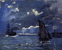 Een zeegezicht, Scheepvaart bij maanlicht, Claude Monet (1864)