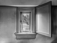 Een zolderraam van het voormalig Prinsengracht ziekenhuis in Amsterdam.