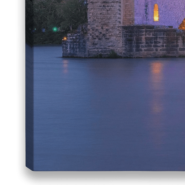 Een 16:9 foto van een avond na zonsondergang bij de Pont Saint-Bénézet, vooral bekend onder de naam Pont d'Avignon een restant van een historische boogbrug over de Rhône rivier in het centrum van de Zuid-Franse stad Avignon, een stad in het zuiden van Frankrijk, in het departement Vaucluse.