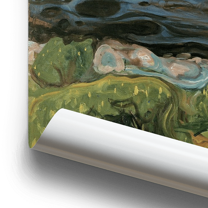 Koop Een zomernacht op het strand, Edvard Munch als reproductie geprint op canvas, aluminium dibond, (ingelijste) fotoprint, behang en ArtFrame. Voor jou op maat geprint in Fine-Art kwaliteit.
