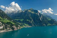 Uitzicht vanaf de Seelisberg over het Vierwoudstedenmeer naar de Bristenstock, Kanton Uri, Zwitserland