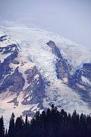 Halverwege de middag klaarde het weer helemaal op en werden de details van de verschillende gletsjers beter zichtbaar. Hier bij Reflection Lake in Mount Rainier National Park, Washington, USA kregen we een geweldig uitzicht op een geweldige gletsjer.