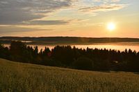Een zonsopgang op een zomerochtend, Sainte-Apolline, Québec, Canada