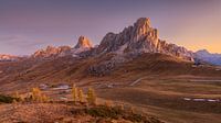 Koop de foto Een zonsopkomst bij Passo di Giau Italië van Marga Vroom als print op canvas, aluminium dibond, (ingelijste) fotoprint, behang en ArtFrame. Voor jou op maat geprint in Fine-Art kwaliteit.
