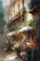 Een zwoele zomeravond in Parijs. Zie jij jezelf al heerlijk op dit terrasje middenin Parijs zitten? Wijntje, biertje of watertje erbij? Met dit werk aan je muur breng je de Franse sfeer in huis!