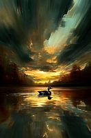 Deze prachtige afbeelding toont een serene eend die rustig dobbert op het water terwijl de lucht wordt gevuld met een indrukwekkende mix van gouden en donkere wolken tijdens een adembenemende zonsondergang. De reflectie van de lucht in het water voegt een extra dimensie toe aan het geheel, waardoor dit kunstwerk perfect is voor wie…