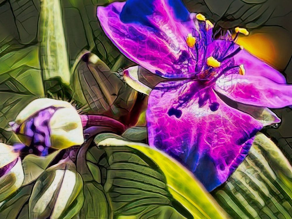 Digitale bewerking van een close-up van de bloem van de paarse Eendagsbloem.