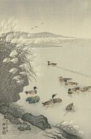 Koop Eenden in het water van Ohara Koson als reproductie op canvas, aluminium dibond, (ingelijste) fotoprint, behang en ArtFrame, op maat geprint in Fine-Art kwaliteit.