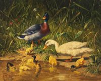 Koop Eenden met jongen aan het water, Carl Jutz als reproductie geprint op canvas, aluminium dibond, (ingelijste) fotoprint, behang en ArtFrame. Voor jou op maat geprint in Fine-Art kwaliteit.