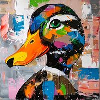 Portret van een eend in de stijl van een modern abstract schilderij.