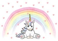 Eenhoorn met regenboog en hartjes van Debbie van Eck