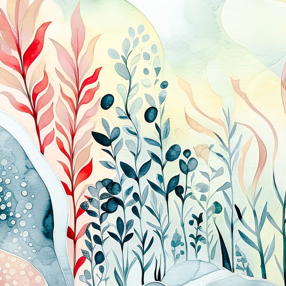 Deze botanische kunst print geeft een vereenvoudigd winter landschap weer. Dit planten en bladeren schilderij in een prachtig winters kleurpallet past in de collectie natuurlijk wonen en nieuw landelijk. Ook heeft het elementen van de wabi-sabi stijl waardoor het eenvoud en rust in uw interieur brengt.