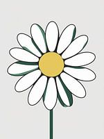 Een vrolijke, grafische illustratie van een klassiek wit madeliefje met zuivere witte bloemblaadjes die uitstralen vanuit een helder geel hart, zwart omlijnd voor een heldere definitie. Het eenvoudige ontwerp op een lichte achtergrond vangt de onschuldige charme en tijdloze aantrekkingskracht van de bloem's. Ideaal voor…
