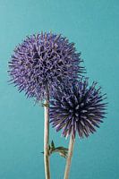 De kleuren in dit werk zijn een fijn combinatie bij elkaar vind ik. De blauwgrijze kleur van de kogeldistel bollen met een gemêleerde turquoise op de achtergrond. Deze kleurcombinatie heeft iets fris. Een lenteachtige, kleurrijke sfeer.