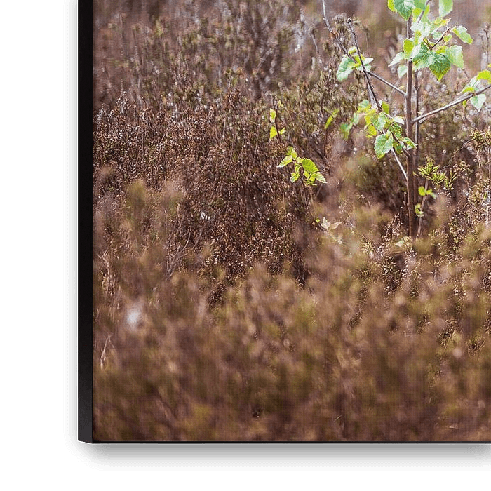 Een klein jong boompje wordt omringt door heide. Den Treek, Amersfoort/Leusden. Helaas staat de heide nog niet helemaal in bloei, dat komt later in het seizoen. Maar dat maakt deze foto niet minder indrukwekkend.