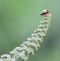 Lieveheersbeestje aan het uiteinde van een vlinderstruik.