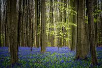 Eenzaam boompje tussen de grote bomen in het Hallerbos in België, Tussen de Blauwe hyacinten.