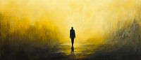 Te midden van een gouden sluier van licht en schaduw dwaalt een eenzaam silhouet in het onbekende. Het warme kleurenschema straalt rust en diepte uit, perfect voor een plek om je terug te trekken, zoals de slaapkamer of woonkamer. Dit schilderij nodigt uit tot dromen en reflecteren en verandert elke kamer in een oase van contemplatie.