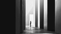 Deze scène toont een eenzame persoon te midden van de grimmige contrasten van licht en schaduw in een moderne architecturale omgeving. De indrukwekkende architectuur creëert een fascinerende achtergrond van licht en schaduw die de sfeer van de scène karakteriseert. De eenzame figuur staat in het middelpunt van de actie en verleent de…