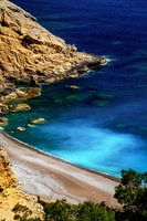 Eenzaam strand in Mallorca in dramatisch licht met blauw turkoois water