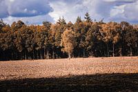 Tijdens een boswandeling in Bladel stuitte ik op deze prachtige eenzame boom op een herfstdag. De schaduw zorgt voor een mooi lijnenspel in het beeld samen met de bewolking.