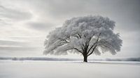 Eenzame besneeuwde boom van Anton de Zeeuw