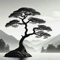 met bergen op de achtergrond. a.i. art en digitaal bewerkt met Photoshop.