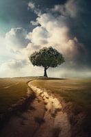 De eenzame boom in dit surrealistische landschap vertelt een verhaal van doorzettingsvermogen en eenzaamheid. Terwijl zijn takken kronkelen in de wind, kijkt hij uit over een wereld die hem niet begrijpt. Maar juist omdat hij alleen staat, valt hij op. Zijn schoonheid is uniek en tijdloos, en zal de aandacht trekken van iedereen die naar hem kijkt. Dit digitale schilderij zal niet alleen een statement maken in uw huis, maar zal u ook eraan herinneren dat het oké is om anders te zijn en dat er altijd schoonheid te vinden is in de eenzaamheid. Laat deze boom uw muur sieren en uw geest verrijken.