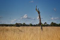 Een eenzame boom alleen op het veld. De blauwe lucht met de kleine wolkjes accentueert nog eens de boom. Er straalt rust van uit.