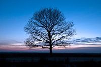 Silhouet van boom tegen de avondhemel op het Dwingelderveld