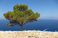 Bovenaan de rotsen van Navagio Beach groeit niet veel. Deze boom heeft echter een mooie plek gevonden.