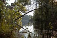 Zo ook deze eend, die rustig zijn weg door het water vervolgd in een van de plassen van de Oisterwijkse Bossen en Vennen.