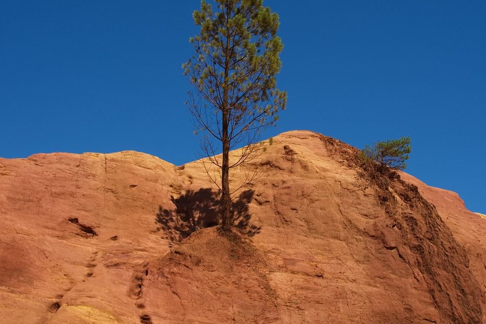 Temidden van het indrukwekkende landschap van de Colorado Provencal in de Provence in Frankrijk, staat deze eenzame jonge boom kwetsbaar maar toch ook weer sterk in een eeuwenoud landschap.