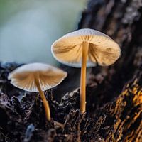 Deze bruinsnedemycena, een van de vele paddenstoelensoorten, vind je veel in het bos. Deze staat in het Lockhorsterbos in Leusden op een van de vele boomstronken.