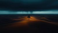 De zachte kleurschakeringen van zand, lucht en zonlicht creëren een dromerig panorama dat zowel minimalistisch als indrukwekkend is. De compositie straalt stilte en kracht uit, en nodigt de toeschouwer uit om even stil te staan bij de schoonheid van eenvoud.