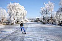 Eenzame schaatser op het platteland in Nederland