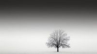 Deze minimalistische afbeelding toont een oude, onvolgroeide boom zonder bladeren tegen een helderwitte achtergrond die overgaat in een donkere lucht. De eenvoud van de scène brengt een gevoel van eenzaamheid en leegte over. De kale boom symboliseert vergankelijkheid en kwetsbaarheid, terwijl de overgang van witte naar donkere lucht een…