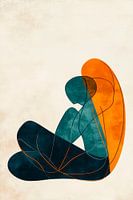 Zachte kleuren en gebogen lijnen creëren een sfeer van rust en introspectie. De harmonieuze combinatie van warme oranje en koele blauwe tinten creëert een gevoel van geborgenheid. Perfect voor een slaapkamer of ontspanningsruimte, dit kunstwerk nodigt uit tot reflectie en ontspanning en voegt tegelijkertijd stijlvolle flair toe.