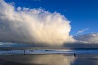 Op het strand van Nieuwvliet-bad tussen de buien door deze visser kunnen fotograferen