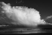 Op het strand van Nieuwvliet-bad tussen de buien door deze visser kunnen fotograferen dit in een zwart witte omzetting