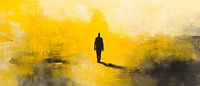 Een eenzame silhouetfiguur schrijdt door een heldere zee van gele en zachtgrijze tinten. Deze opvallende compositie creëert een sfeer van contemplatie en inspiratie. Ideaal voor op kantoor, het nodigt uit om na te denken over nieuwe ideeën en moedigt creatieve stromen aan.